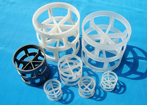鲍尔环填料系在普通拉西环的辟上开二层长方形小窗,小窗叶在环中心相搭,上下二层窗位置交错,因此阻力降低,气速可提高,液相分布均匀,同样压降下,处理量可比拉西环提高50%以上。