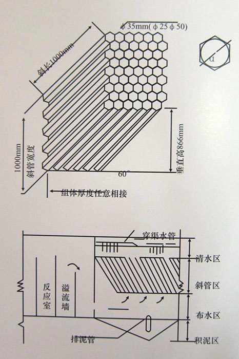 3、当斜管管长为1米时,有效符合按3-5吨/米3时设计。V0控制在2.5-3.0毫米/秒范围内,出水水质最佳。