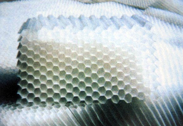 我公司生产的六角形蜂窝填料有斜管和直管两种形式。材质有聚丙烯、聚氯乙烯和玻璃钢三种。