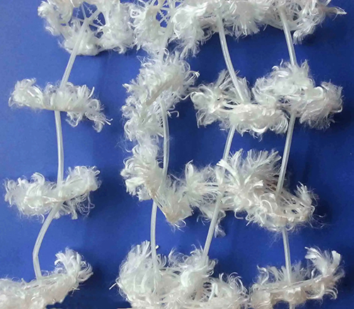 组合填料它是有塑料环为依托,作为骨架,负载着维纶丝,维纶丝紧固在塑料环上,在污料中丝束分布均匀,易生膜,换膜,并对污水浓液的适用性好。