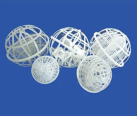 该填料中有聚乙稀或聚丙稀材料注塑而成,分内外双层球体,外部为中空鱼网状球体,内部为转型球体,在使用过程中,微生物易生成、易更换、耐酸碱、抗老化,不受水流影响,使用寿命长,剩余污泥极少,安装方便。